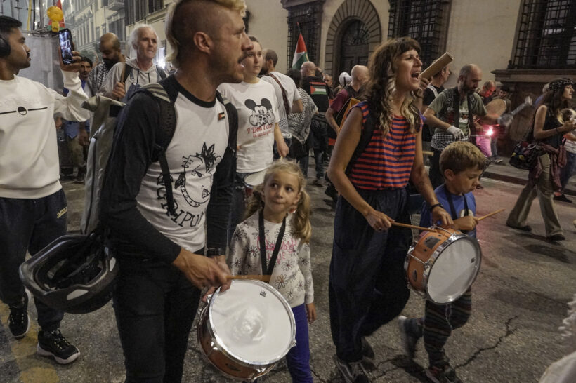 Un “equipaggio di terra” che ha poi sfilato per le vie del centro al grido di ” Firenze sa dove stare, Palestina libera dal fiume al mare” scandito dal ritmo travolgente dei tamburi del Collettivo di Fabbrica ex GKN.