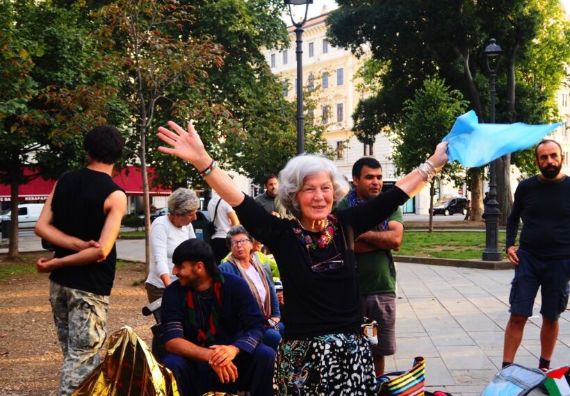 Siamo al terzo viaggio. Siamo i Fornelli Resistenti di Pesaro. Tutte le sere in questa piazza di Trieste associazioni, volontari, liberi cittadini distribuiscono pasti alle tante persone che arrivano in Europa dalla ormai tristemente nota Rotta balcanica. Non solo, distribuiscono pasti anche a chi non è ancora entrato nel circuito dell’accoglienza istituzionale e vive in alloggi fatiscenti situati in questa bellissima città.