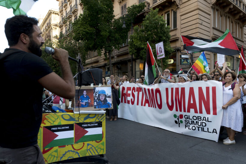 Insomma, tra tamburi e arnesi culinari, la gran cassa della solidarietà palermitana espressa alla missione della flotta umanitaria per la Palestina si è fatta sentire alta e forte. Purtroppo non tutta la stampa locale ha drizzato le antenne, facendo finta di non sentire l’eco di una piazza (forse diecimila persone) straordinariamente partecipata come poche altre negli ultimi anni nella nostra città.