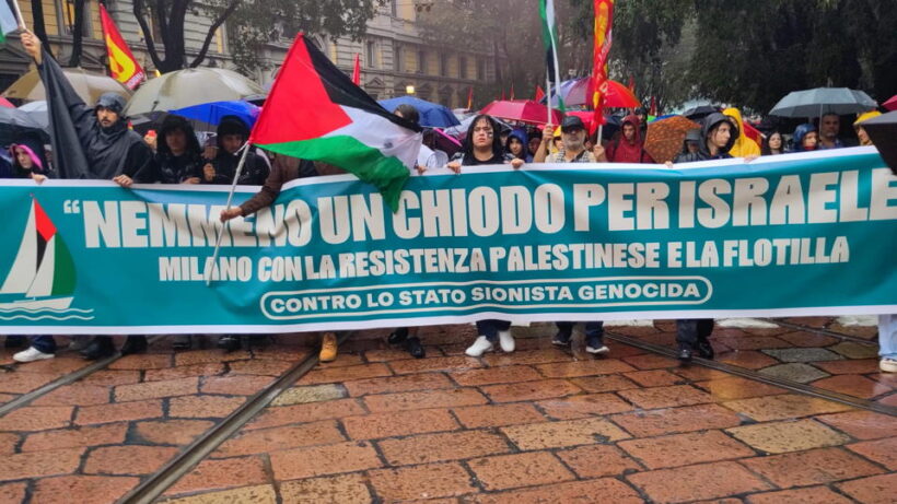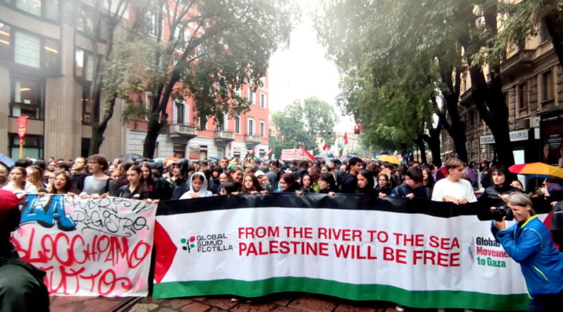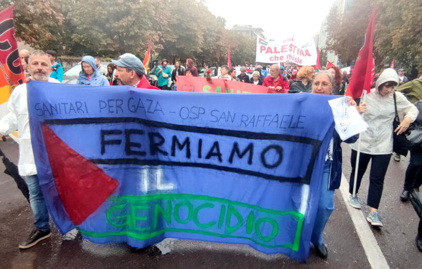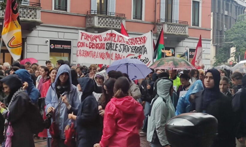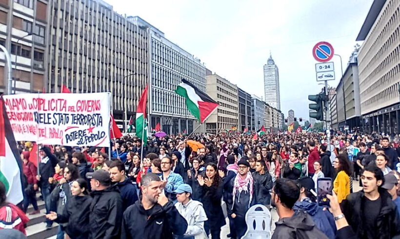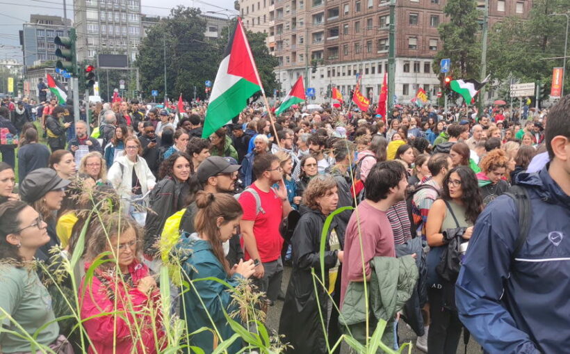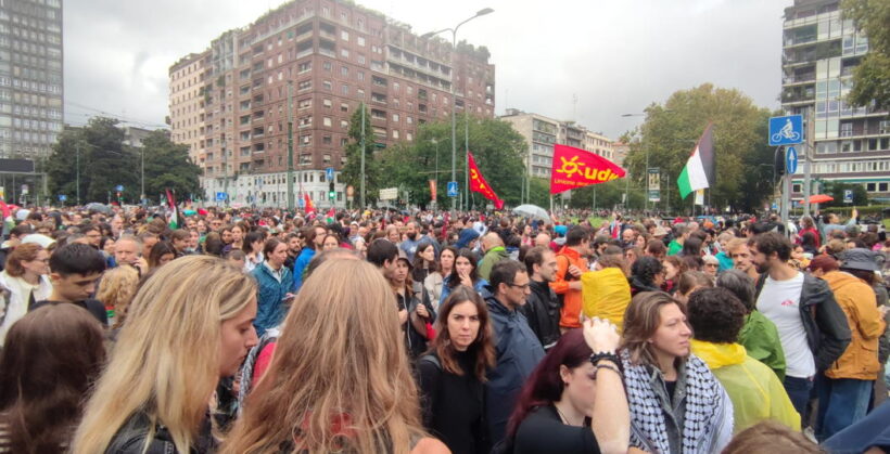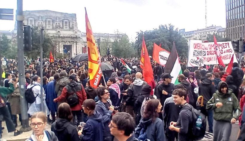 A Milano, in piazza Cadorna, una moltitudine di persone è già lì prima delle 9, per non rischiare di mancare a causa dello sciopero dei mezzi che sarebbe cominciato di lì a poco, e nonostante la pioggia battente. Il corteo parte oltre un’ora dopo, e ci sono proprio tutti: non se ne vede la fine. Milano c’è e dice no al genocidio, sta a fianco dei palestinesi massacrati, chiede di cessare il fuoco, difende i bambini, denuncia la complicità dei governi occidentali, compreso certo il nostro. Basta guerra, basta violenza.