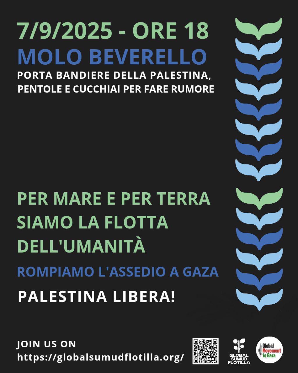 Lo slogan scelto, “Per mare e per terra siamo la flotta dell’umanità” , sottolinea la natura globale del movimento: non una battaglia militare, ma un atto di resistenza civile e nonviolenta che lega porti e piazze di tutto il mondo.