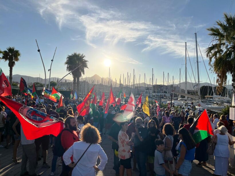 Il corteo di barche della Lega Navale Italiana nel golfo di Palermo, di fronte al lungomare intitolato a Yasser Arafat, storico leader della resistenza palestinese e capo dell’OLP, ha aperto la manifestazione indetta il 6 settembre scorso dalla CGIL a livello nazionale in varie città italiane e che, nel capoluogo siciliano, si è svolta a partire dalle 17.00.