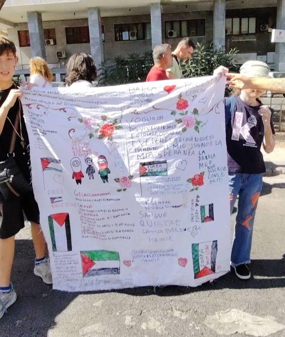 Saremo anche irredimibili, ma stamattina, sfilando tra piazza Castelnuovo e piazzetta della Pace, quelli di noi che riescono ancora ad immaginare un futuro di pace hanno saputo dare una civile e significativa testimonianza di dissenso e una sonora sberla al governo italiano che, pur potendo fare qualcosa di concreto per fermare la mattanza di bambini, ha scelto il silenzio, la complicità, il sostegno politico agli assassini. People have power, cantava Patty Smith.