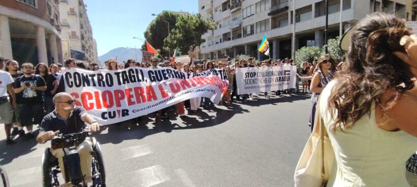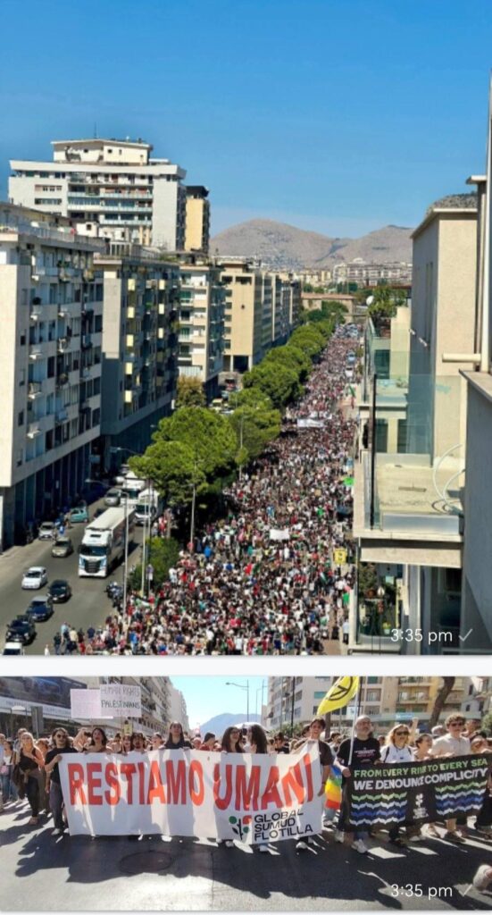 Dai tempi delle catene umane, dei lenzuoli appesi alle finestre e della grande mobilitazione cittadina subito dopo le stragi di Capaci e via D’Amelio, mai tanta gente si è riversata in piazza a Palermo come in queste ultime settimane, affollando a dismisura i cortei organizzati a partire dal 4 settembre, per invocare la fine del genocidio a Gaza. Gli organizzatori oggi parlano di ventimila manifestanti, qualcuno dice trentamila, qualcun altro addirittura azzarda cinquantamila.