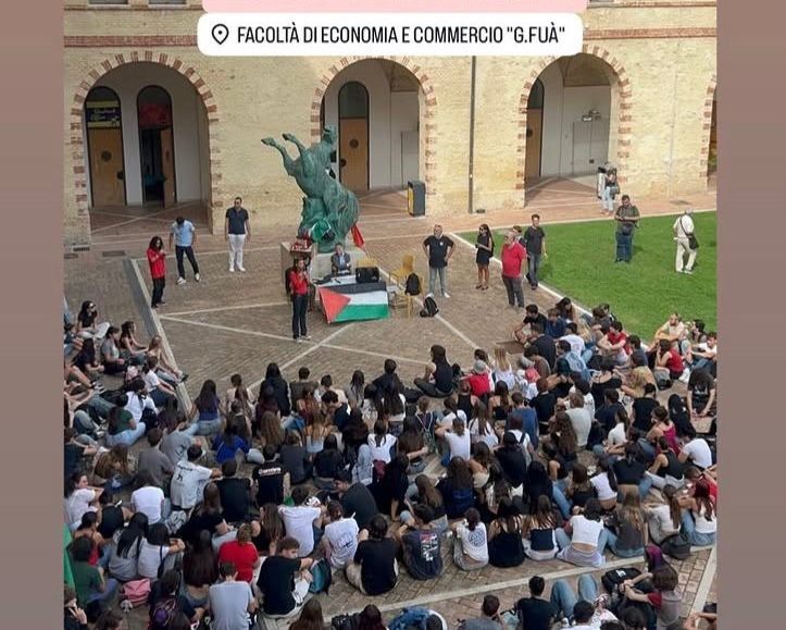 Dopo un momento assembleare, gli studenti e le studentesse si sono mossi in corteo per raggiungere la Facoltà di Economia, dove alle 11 si è tenuta un’assemblea generale a cui hanno partecipato studenti medi, universitari, professori delle scuole di ogni ordine e grado, professori universitari e lavoratori dell’Università Politecnica delle Marche.