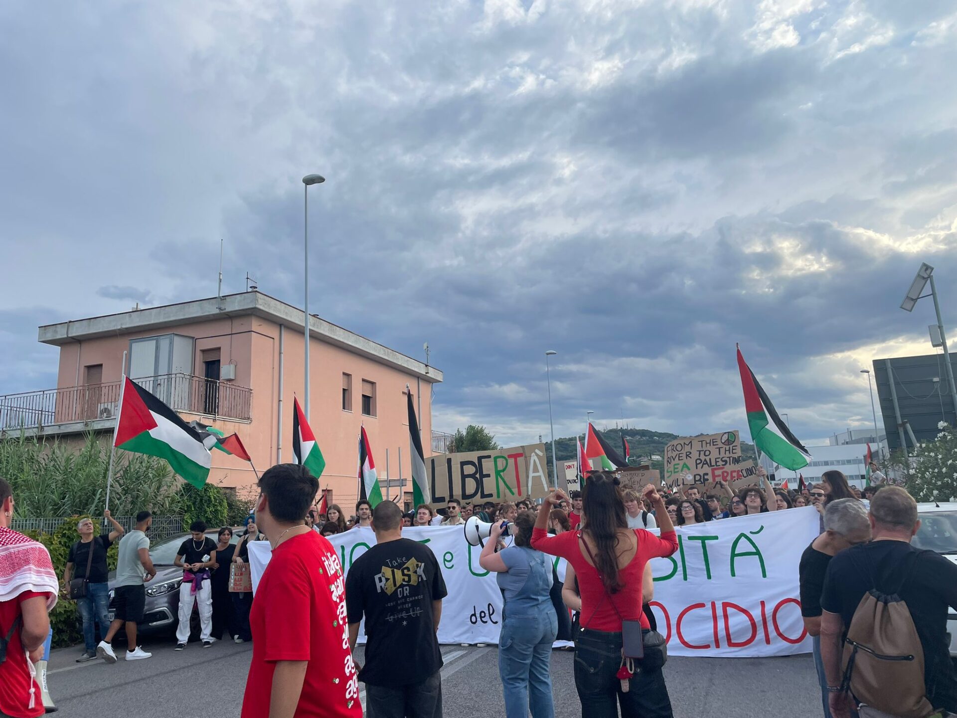 Una volta terminata l’assemblea i partecipanti si sono uniti dietro lo striscione che denunciava “Scuole e università complici del genocidio” e hanno raggiunto insieme il luogo dell’inizio del corteo promosso dal Coordinamento Marche per la Palestina, che è partito alle 16 dal porto turistico di Marina Dorica.