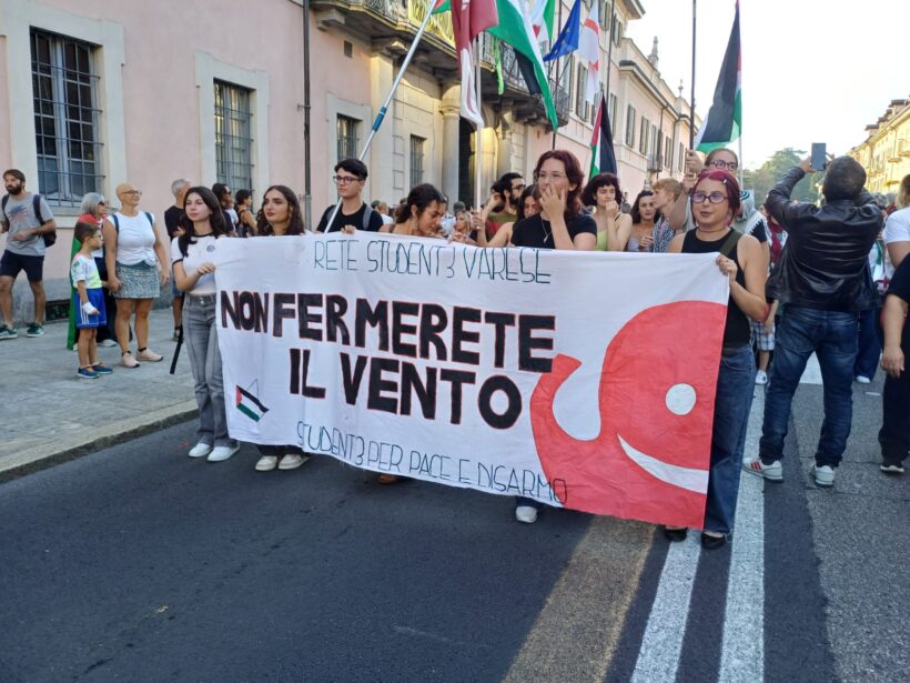 A Varese si respira un’aria nuova. Sabato 20 settembre qualcuno si è incontrato a casa di amici per creare uno striscione da portare al corteo per la pace promosso dal Collettivo Wake Up Varese. Diverse realtà varesine si sono collegate grazie alla spinta della raccolta di alimenti da imbarcare con la Global Sumud Flotilla; si è creato così un gruppo informale molto attivo, che si sta adoperando affinché l’attenzione su quello che sta succedendo in Palestina non venga a mancare e possa coinvolgere più gente possibile.