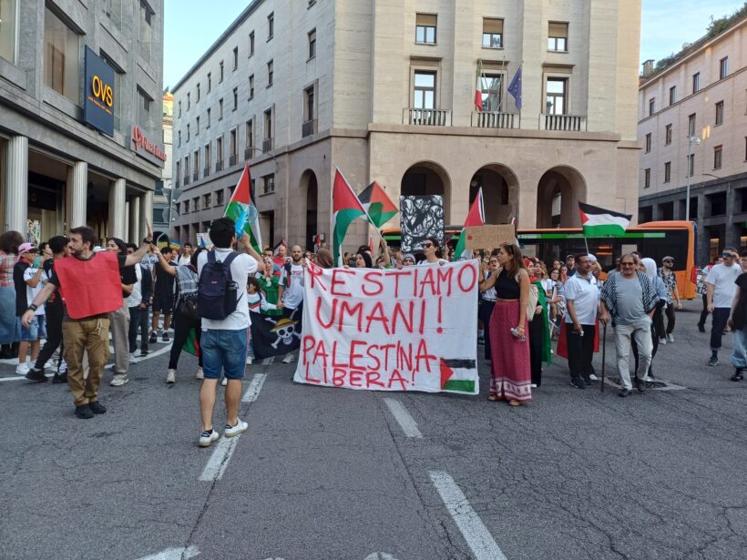Moltissimi striscioni, bandiere della Palestina e della Pace, cartelloni con slogan chiari “Restiamo umani, Palestina Libera”, “Boicotta Israele”, “Israele criminale, Palestina immortale”, “Il silenzio dei potenti è complicità”, Varese sa da che parte stare”, “Siamo tutti palestinesi”, “Blocchiamo tutto” in riferimento alla possibilità che la Global Sumud Flotilla venga fermata o peggio ancora colpita dal fuoco di Israele. Nel corteo tanti giovani, famiglie con bambini, adulti di ogni estrazione sociale, italiani, nordafricani, mediorientali, studenti, lavoratori, pensionati.