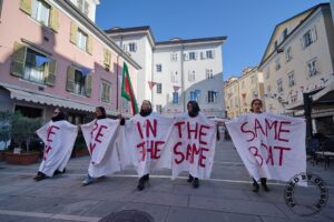 Una cinquantina si sono ritrovati in Piazza della Borsa perchè “la Palestina va ancora liberata e che Israele e le guerre vanno boicottate sempre”.