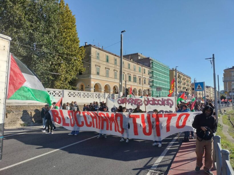Dopo il corteo di ieri sera ad Ancona con centinaia di persone che hanno invaso il centro cittadino bloccando il traffico, rispondendo all’appello “Blocchiamo tutto” della rete dei Centri sociali delle Marche e di USB, dalle ore 16.00 è bloccato il Valico da Chio del porto di Ancona; non arrivano e partono navi e sono bloccate anche le strade intorno.