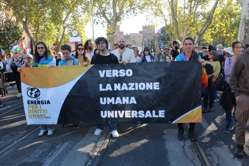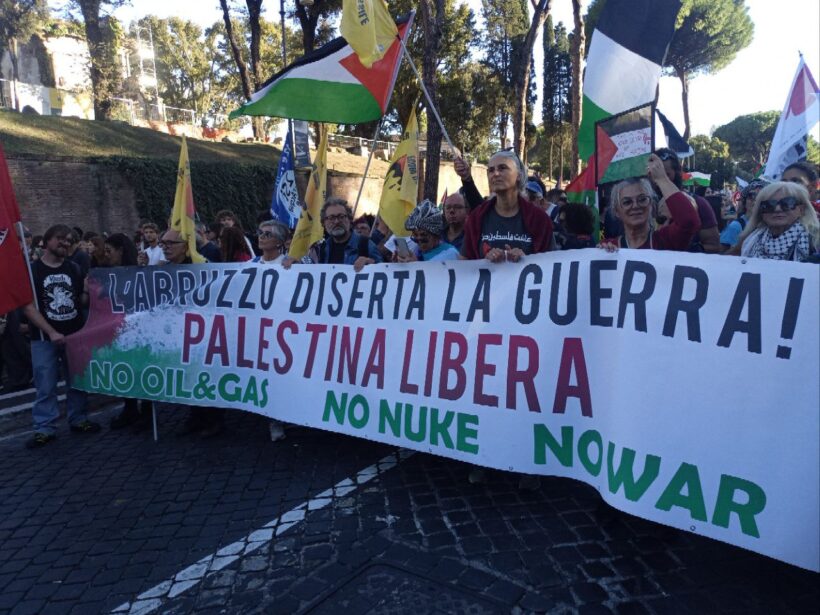 Un corteo pacifico, osservato con simpatia dalla gente che lungo i marciapiedi o dalle finestre sventolava le mani per salutare. La parola pace, la richiesta di mettere fine al genocidio ha messo, se non tutti, moltissime persone d’accordo, perché ognuno di coloro che non hanno potere, in questo periodo di crudeltà e tensione al riarmo, si è posto inconsciamente il problema della sopravvivenza della nostra specie. Tra i partecipanti moltissimi arrivati in autobus da tutta Italia. Gli attivisti hanno denunciato un tentativo di bloccare il loro flusso da parte delle forze dell’ordine, con controlli ai caselli autostradali e perquisizioni ma, a parte un rallentamento, l’affluenza c’è stata comunque e ha dato origine a un poderoso, straordinario, fiume umano.