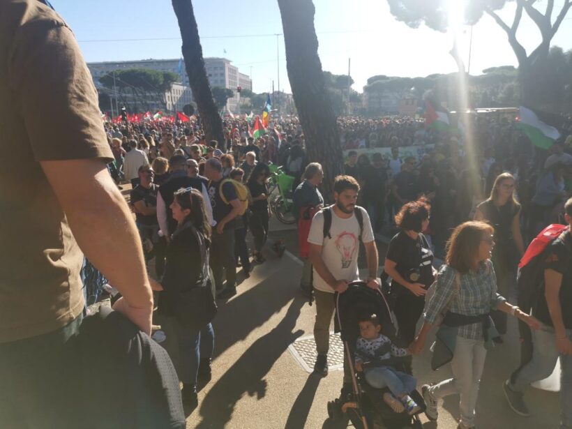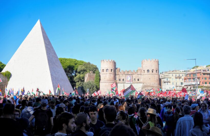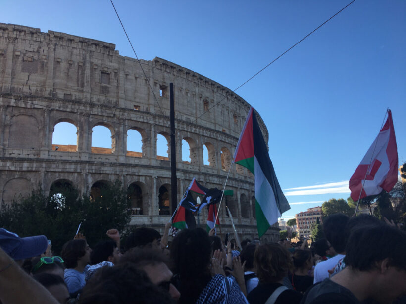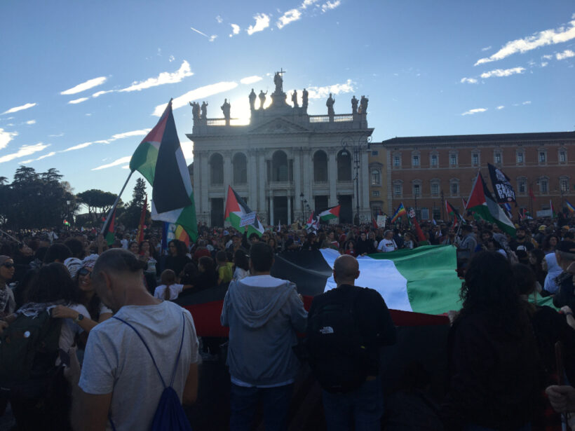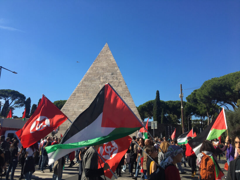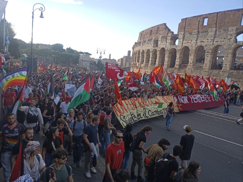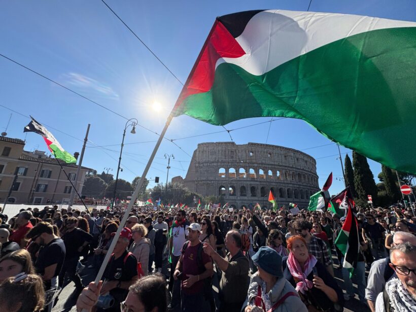 Gli organizzatori parlano di oltre un milione di partecipanti alla manifestazione nazionale per Gaza del 4 ottobre a Roma. Cosa certa è che la testa del corteo, partita alle 14.30 da Porta San Paolo, poco prima delle 17.00 era arrivata a Piazza San Giovanni, punto d’arrivo, mentre la coda era ancora al punto di partenza. Una marea di gente, che raramente è possibile vedere. Il corteo da Porta San Paolo a Piazza San Giovanni ha sfilato lungo viale della Piramide Cestia, piazza Albania, viale Aventino, piazza di Porta Capena, via di San Gregorio, via Celio Vibenna, piazza del Colosseo, via Labicana e via Merulana. Un lungo tratto del centro di Roma, composto di larghi viali e strade che la folla occupava per intero.