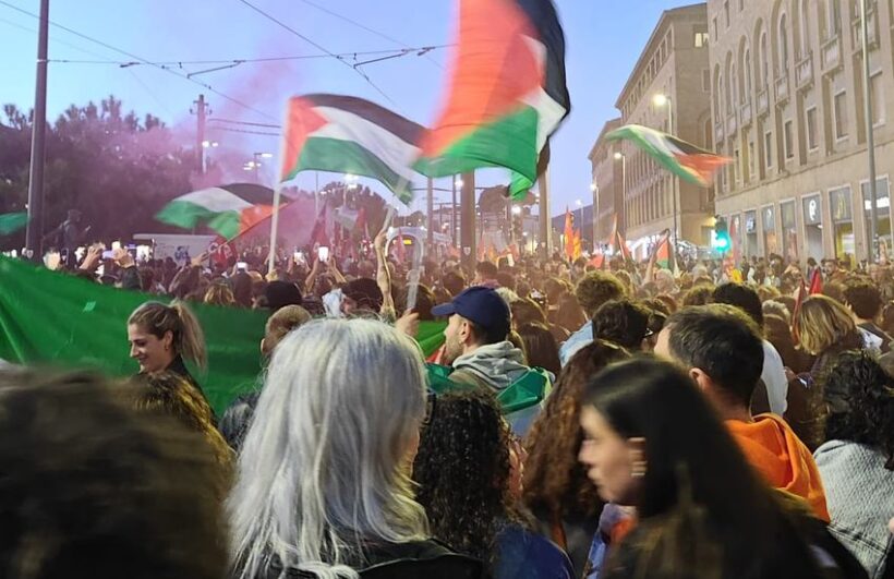 Ieri pomeriggio si è svolta nel centro di Firenze l’immediata manifestazione di protesta per il blocco e l’arresto della Global Sumud Flotilla in acque internazionali.