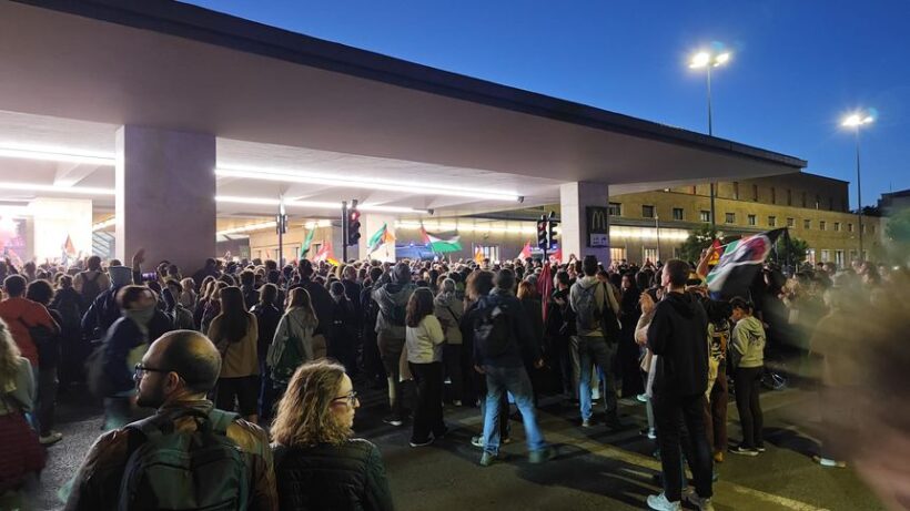 Le proteste sono continuate in serata con un presidio di fronte all’Ospedale di Careggi organizzato da Sanitari per Gaza.