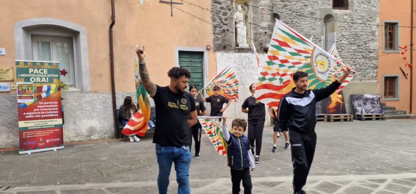 Il pomeriggio ha preso il via con un vibrante spettacolo di benvenuto offerto dagli Sbandieratori di Gallicano – guidati dal presidente Alessandro Pinocci, Andrea Costabile e dal fondatore Giulio Baldacci – che, nella piazzetta antistante la Biblioteca, hanno dato un tocco di colore e tradizione all’apertura dei festeggiamenti.