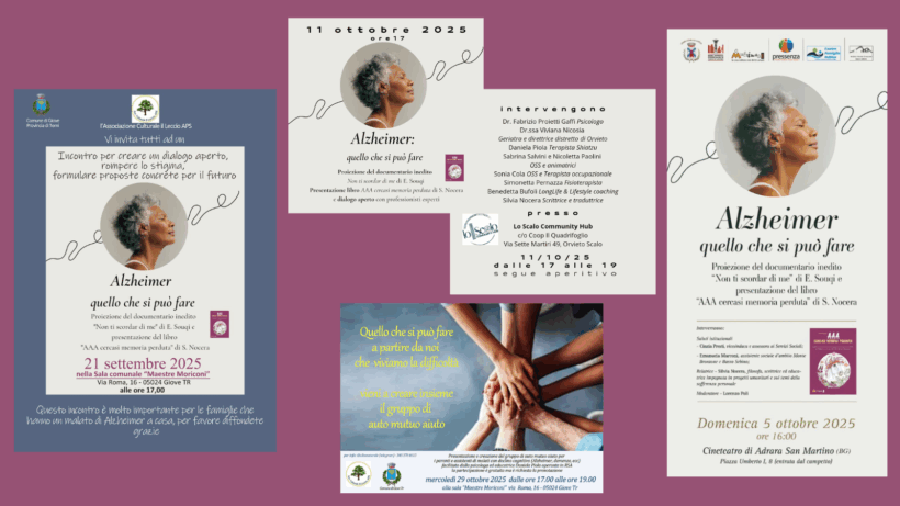 Dal 21 settembre all’11 ottobre 2025 si sono svolti tre incontri aperti sulle demenze dal titolo “Alzheimer. Quello che si può fare” con l’obiettivo di rompere lo stigma su questa malattia e dare stimolo alla creazione di servizi utili alle famiglie colpite.