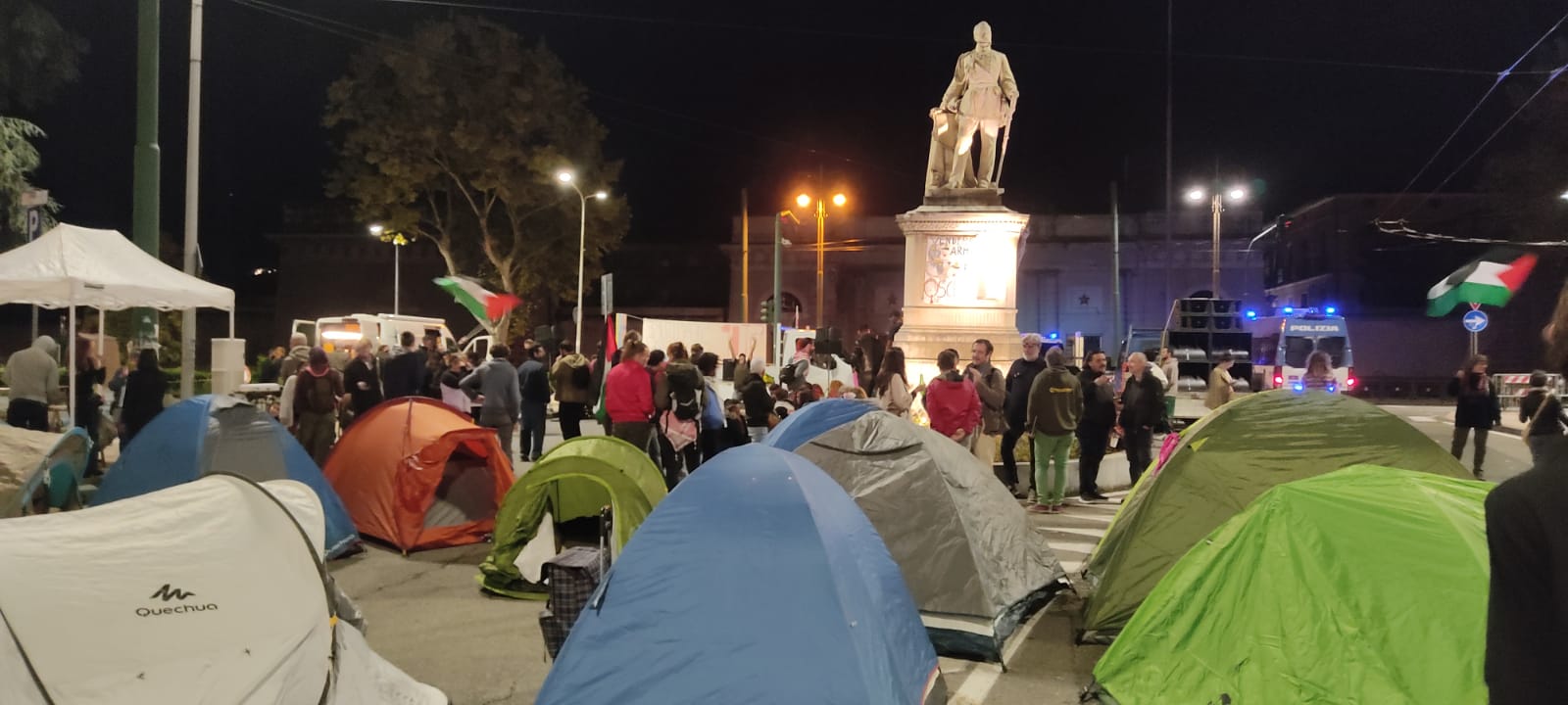 La mobilitazione, articolata e ricca nella sua composizione, è iniziata con il corteo del 27 settembre, ma è diventata permanente con una sentita, partecipata “acampada” proprio di fronte all’Arsenale Militare in piazza Chiodo, rinominata per l’occasione piazza Palestina libera. Con il trascorrere delle ore si è trasformata in uno spazio di incontro, di assemblee pubbliche, di musica, cultura, di responsabilità condivisa, espressione di una consapevolezza che nel divenire visibile riesce a connettere il livello locale con quello globale. Un luogo in cui diviene pratica la costruzione di comunità. Un modo anche per annodare fili, costruire legami che costruiscano continuità. Una “acampada” che intende rimanere almeno fino al termine di SeaFuture, forse anche più a lungo, per offrire una diversa prospettiva di futuro e una narrazione a più voci, ognuna portatrice di speranza…..