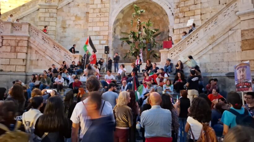 Ieri, 8 ottobre 2025, un presidio affollato ha riempito Piazza Costituzione e le scalinate del Bastione di Saint Rémy. L’ultimo degli innumerevoli presidi e cortei che si sono svolti nel capoluogo della Sardegna, ma anche nelle altre città (Sassari, Nuoro, Oristano, Olbia, Alghero, Iglesias…) e pure nei piccoli centri dell’interno dall’indomani del 7 ottobre 2023 fino ai nostri giorni.