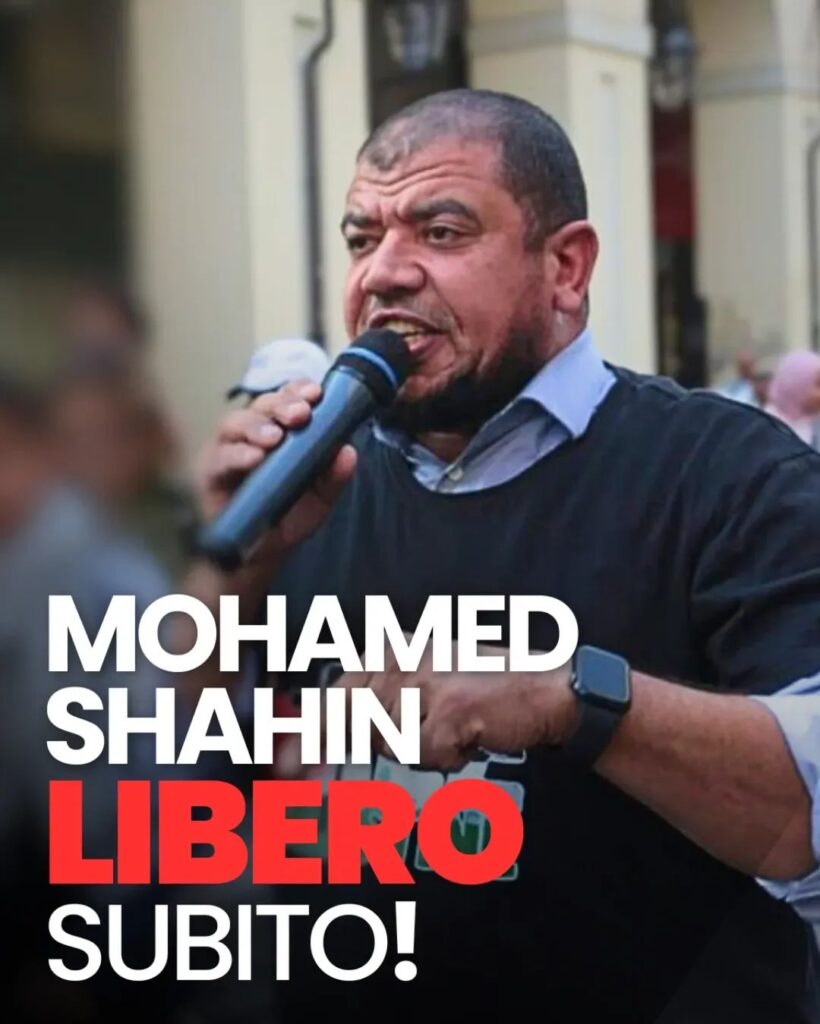 Torino-InfoPal. Mohamed Shahin, leader di una moschea a Torino, in Italia, dissidente politico egiziano (che rischia la pena di morte in Egitto), prominente attivista pro-Palestina e contro il genocidio a città di Gaza, è stato arrestato due giorni fa dalla polizia italiana, su ordine del governo filo-sionista, razzista e islamofobo della prima ministra Meloni, per il suo sostegno alla Palestina.