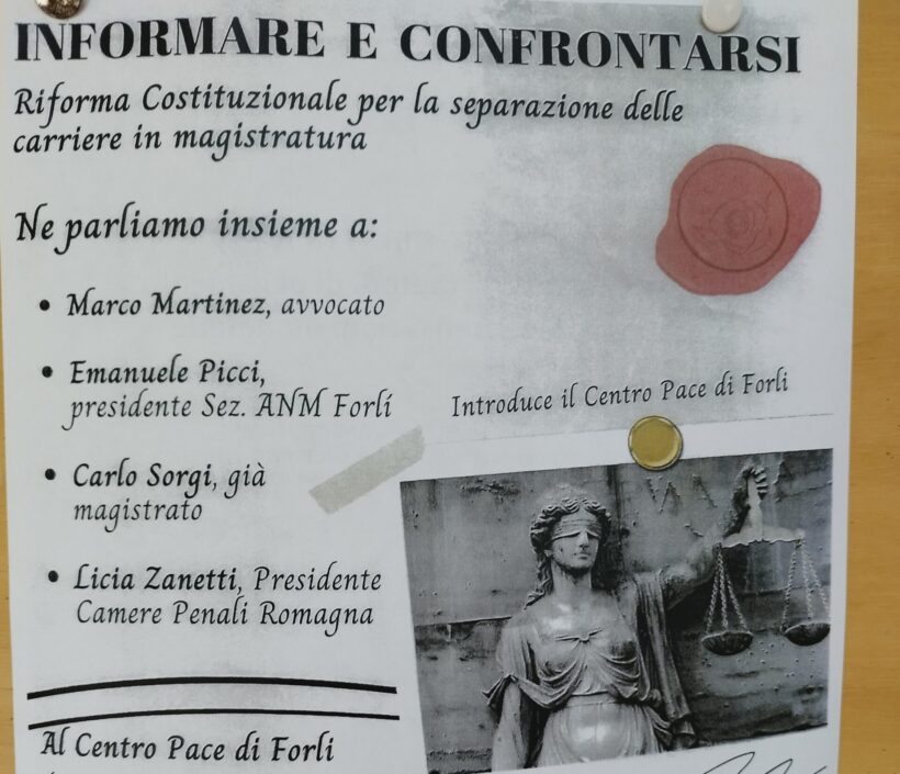 La sera del 3 novembre presso il Centro Pace di Forlì di è svolto un incontro sulle tematiche della riforma costituzionale sull’ordinamento giudiziario.