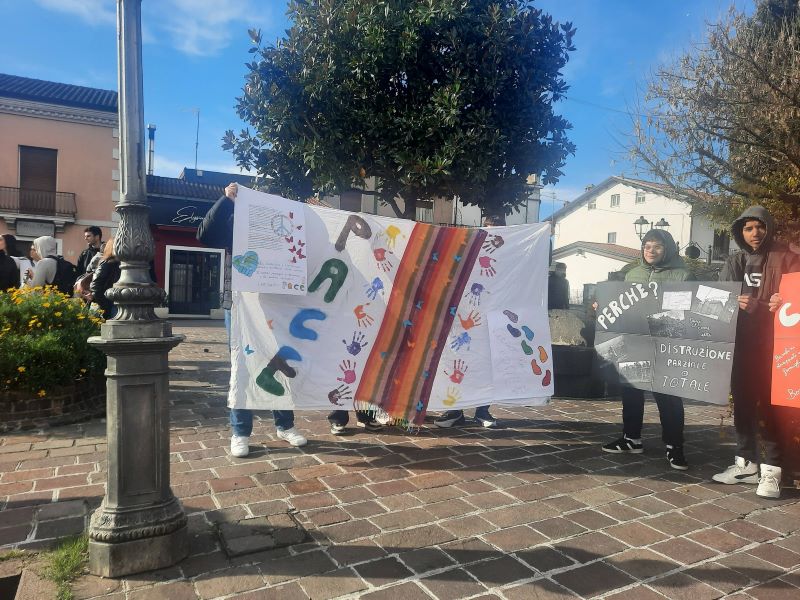 Gli alunni dell’ISISS classi 4Bi, 4Ac e 5Aen hanno declamato dei pensieri sull’importanza di fare Pace ogni giorno, ricordando citazioni di noti testimoni di Pace; essi sono stati preparati dalle docenti: Monte Morena, Antonella Capuano, Giovanna Mizzoni e Carolina Tartaglia (le ultime 2 hanno anche accompagnato gli alunni).