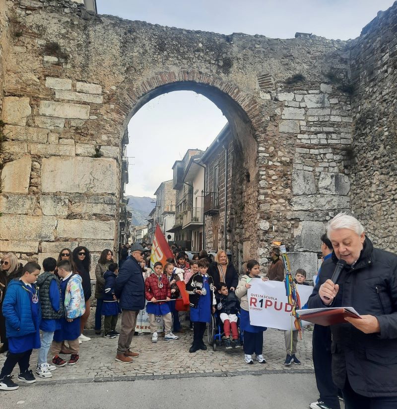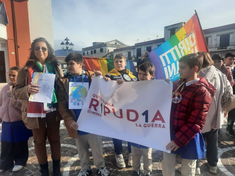 Una giornata importante per Alife, un messaggio di speranza per i giovani in cerca di riferimenti. Anche il cielo ne ha dato dimostrazione, andando a illuminare con un raggio di sole, che ha squarciato le nubi per riversarsi sul Giardino della Pace, i volti degli alunni mentre declamavano messaggi di Pace.