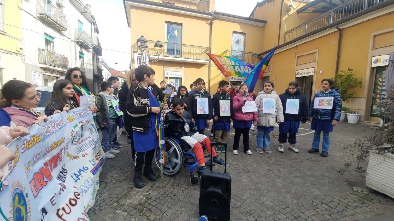 Gli alunni delle classi VI e V di Via Gramsci dell’IC di Alife hanno realizzato disegni e simboli della Pace portati durante la manifestazione, declamato una poesia sulla Pace (in P. Termini), letto riflessioni seguite dal canto Imagine di John Lennon (seguendo l’interpretazione di Matilde Donati).