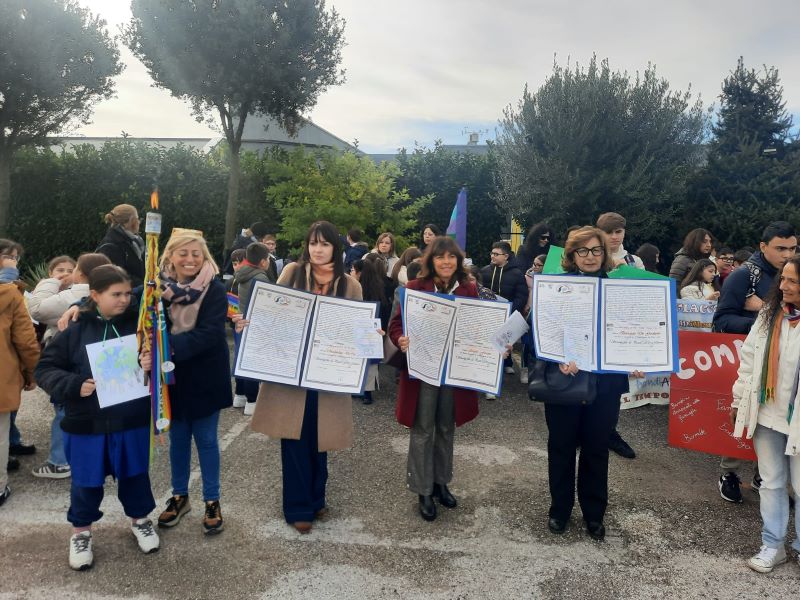 A conclusione del decennale di questa storica mobilitazione e in occasione della Giornata mondiale dell’olivo ricorrente proprio in questi giorni, alle tre scuole partecipanti, il Movimento internazionale per la Pace III Millennio, ha consegnato “l’Olivo della Pace” collegato al tema dell’Albero della Pace, affinché gli alunni di ciascuna scuola coltivino e custodiscano la Pace ogni giorno con le loro azioni.