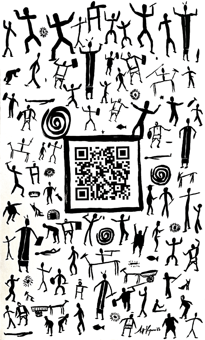 CODICE 404Un’opera che mette in dialogo primordiale e digitale, fallimento e ricerca, presenza e assenza. Le figure stilizzate richiamano i graffiti rupestri: tracce essenziali dell’umano. Al centro domina un grande QR code, simbolo della nostra connessione continua a un altrove tecnologico. Ma cosa accade quando il collegamento si interrompe? Il titolo CODICE 404 cita l’errore di rete che indica una risorsa non trovata: come quando l’informazione scompare, come quando l’identità si frantuma nell’iper-connessione. Il video collegato – 59 secondi tra bianco e nero, rosso e suono pulsante – estende l’opera oltre la tela, in uno spazio digitale ulteriormente effimero. È un cerchio che non si chiude: cercare, fallire, riprovare. Restare umani. Un invito a riflettere sui limiti del progresso e su ciò che rimane di profondamente umano nel caos tecnologico. L’autore, Renzo Dell’Ungaro è art director e grafico con una lunga esperienza nella progettazione editoriale. Ha ideato e realizzato riviste di grande diffusione e prestigio, curando identità visive, impaginazione e comunicazione integrata. Parallelamente porta avanti una ricerca artistica che esplora il rapporto tra essere umano e linguaggi digitali, mettendo in dialogo segni primordiali e codici contemporanei. Oggi il suo lavoro unisce professionalità tecnica e visione creativa, dando forma a progetti che interrogano passato e futuro dell’immagine.