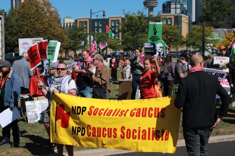 Vengono raccolte idee per le politiche e suggerimenti e commenti sono ben accetti. Il tono è rispettoso. Dico che il Canada dovrebbe firmare il Trattato sulla proibizione delle armi nucleari (TPAN) e questo suggerimento viene accettato. È incredibile! Un piccolo gruppo – che in seguito è cresciuto fino a circa 45 persone – può decidere la politica del Canada. Se Yves diventa leader dell’NDP, e se… e se… ciò che ha deciso un piccolo gruppo potrebbe definire la politica del Canada! E io sogno… alloggi garantiti per tutti, il Canada fuori dalla NATO, lo scioglimento dell’Accordo di difesa nordamericano (NORAD). (Vedi la piattaforma)