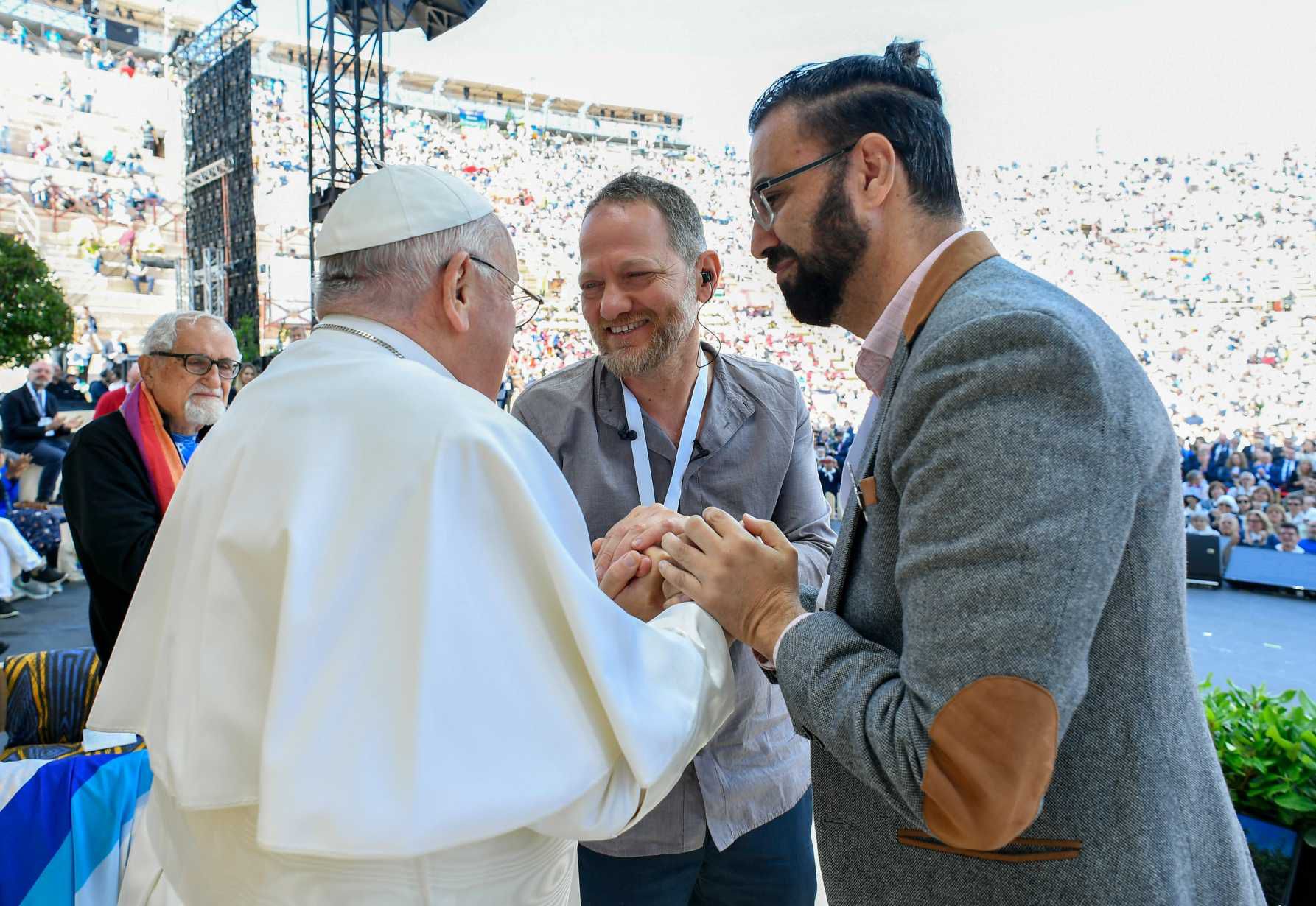 Nel folto gruppo dei premiati di quest’anno (qui l’elenco completo) oltre al Card. Pierbattista Pizzaballa (“Patriarca Latino di Gerusalemme, testimone infaticabile dell’impegno per la costruzione di pace in Terra Santa attraverso il dialogo”) e all’inviata di guerra Lucia Goracci (“per la caparbia determinazione a raggiungere e raccontare l’essere umano laddove la sua dignità viene più drammaticamente calpestata”), figurano anche Maoz Inon e Aziz Abu Sarah che in tanti ormai ben conoscono, da quel bellissimo momento insieme a Papa Francesco per l’Arena di Pace di Verona (maggio 2024), e poi recentemente accolti anche da Papa Leone XIV, oltre che protagonisti di una quantità di seminari, incontri, iniziative in tutto il mondo e soprattutto capofila di quella formidabile coalizione di ben 60 diverse organizzazioni pacifiste, tra Israele e Palestina, che sotto la sigla It’s time ha orchestrato il People Peace Summit il 7/8 maggio scorsi a Gerusalemme.