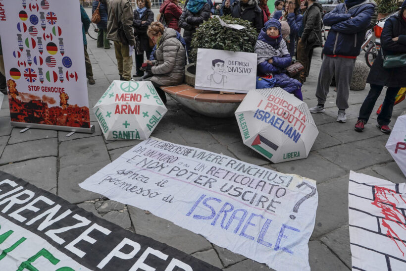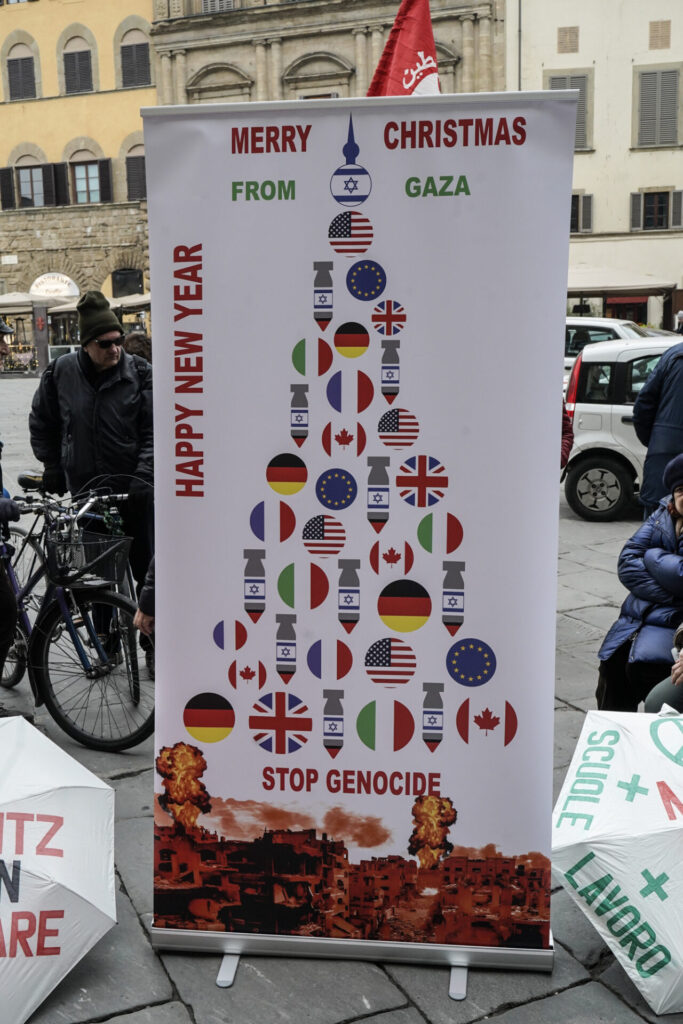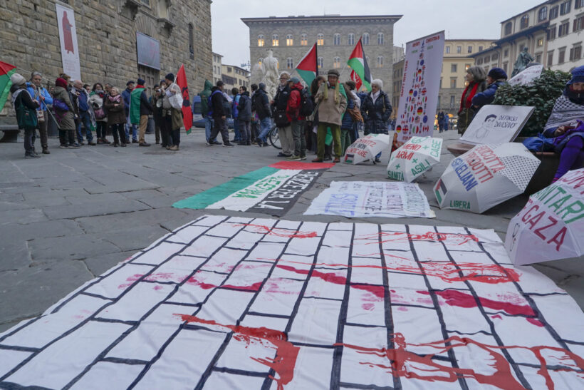 Per questo motivo oggi pomeriggio Firenze per la Palestina, Usb, Sanitari per Gaza e il vario associazionismo pro Pal hanno indetto un presidio davanti a Palazzo Vecchio in occasione del Consiglio Comunale.
