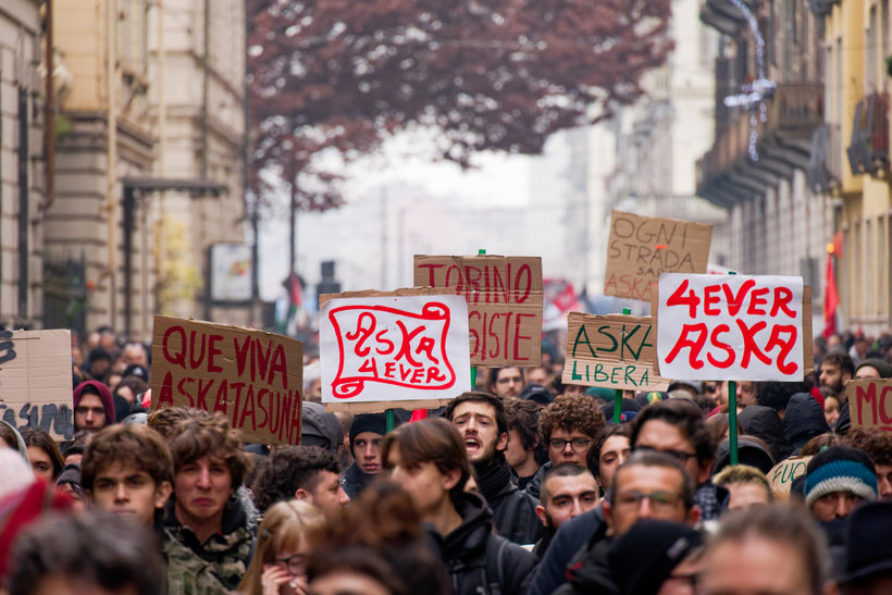 Gente pacifica, dicevo. Alcuni, dentro ed intorno ad Askatasuna ci sono cresciuti, altri ci sono venuti in contatto nell’attivismo sociale in cui, nel bene e nel male, l’Aska ha partecipato: solo per citare alcuni esempi i Social Forum dei primi anni 2000, il Movimento Notav, fino alla recente attività pro-pal e di denuncia del genocidio dei Palestinesi.