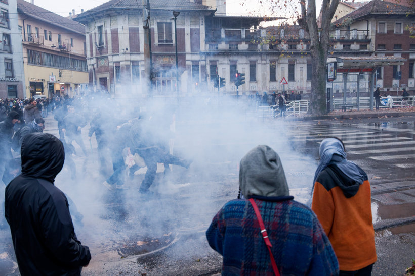 In questa maniera sono uscito dal corteo di solidarietà per l’Askatasuna, lo storico centro sociale di Torino sgomberato giovedì mattina come passo fondamentale del delirio di controllo di Governo Nazionale e simpatizzanti vari. Nel corteo fino a quel momento c’era tanta gente: 2000 persone per la Questura, 10000 per gli organizzatori. Non sono bravo in questi conteggi, ma ad occhio mi sembra più verosimile il secondo numero; tra quelle persone ho visto quasi tutti coloro con cui mi ritrovo a fare attività sociale da 25 anni, a partire dall’epoca dei Social Forum e dalle manifestazioni per Genova 2001. Quella di Genova non è una citazione campata in aria: l’atmosfera intorno a questo corteo mi ricorda molto quella di Genova, manganellate e lacrimogeni compresi; se non ricordo male allora c’erano meno idranti, ma la tecnologia per il controllo si evolve.