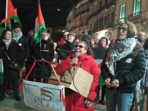 In questi giorni di fine anno, si sono ritrovati a Cagliari alcuni rappresentanti del presidio milanese, per rafforzare questo gemellaggio di presenza attiva davanti allo spettro di un genocidio in atto sull’altra sponda del Mediterraneo, quello del popolo palestinese. Oltre una cinquantina gli attivisti presenti, ma anche numerosi passanti si sono fermati incuriositi. In chiusura, fra le sette e mezza e le otto, l’ora di più frequentata, la musicista e cantante sardo-milanese Silvia Zaru, si è esibita in Bella ciao e nel Disertore, di Boris Vian. E’ stato forte il suo messaggio: contro il genocidio, contro tutte le guerre!