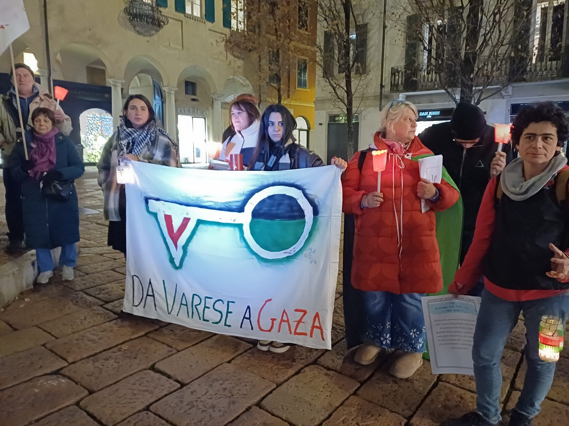 Infine Michela Mazzucchi del Collettivo Da Varese a Gaza e di Operazione Colomba ha chiesto ai manifestanti di pensare a un diritto umano per loro irrinunciabile. Qualcuno ha risposto la salute, qualcun altro la libertà di espressione, l’istruzione, l’uguaglianza, l’alimentazione, la possibilità di muoversi liberamente. Tutti questi diritti per noi irrinunciabili sono del tutto inesistenti in teatri di guerra sparsi nel mondo. E poiché siamo fortunati a poter godere di questi diritti, non dobbiamo darli per scontati ed essere coscienti del fatto che siamo una piccola parte di popolazione privilegiata. Proprio per questo motivo dobbiamo scegliere da che parte stare e mettere le nostre possibilità al servizio di coloro che questi diritti non li hanno. Ha invitato quindi a partecipare alle prossime iniziative e a continuare a resistere.