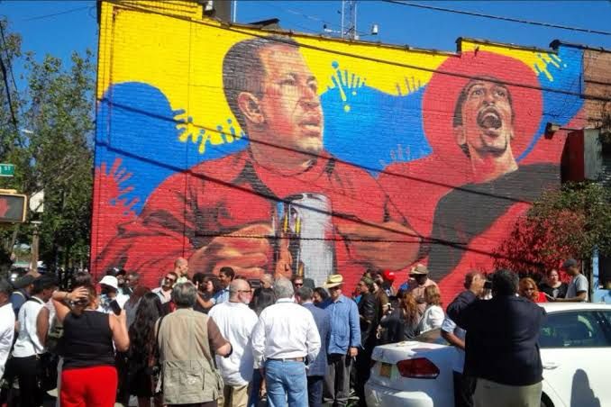 Chavez onorò con la pratica l’ideale di solidarietà internazionale tra lavoratori attuando il programma “Oil for the poor”, con il quale rifornì di greggio a prezzo scontatissimo uno dei quartieri più poveri della città, Mount Hope, nel South Bronx. Nel 2016 il quartiere gli ha dedicato dei murales. Anche i poveri di Chicago e quelli del ricco Massachussetts beneficiarono dalle generose iniziative del governo socialista di Chavez. Oggi sul palco il Venezuela viene ricordato con rispetto e riconoscenza.