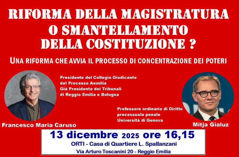 L’evento, organizzato per offrire un momento di confronto su un tema di cruciale importanza per il futuro del Paese, vedrà la partecipazione di relatori d’eccezione: il Presidente Francesco Maria Caruso, Giudice del processo Aemilia, e il Professor Mjtia Gialuz, docente ordinario di diritto processuale e penale all’Università di Genova.