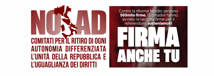 Con il comunicato diffuso oggi – 30 dicembre 2025 – Tavolo NOAD e Comitati per il Ritiro di ogni autonomia differenziata, l’unità della Repubblica, l’uguaglianza dei diritti ribadiscono il proprio NO alla riforma contro la Magistratura ed invitano al massimo impegno per la raccolta delle firme.