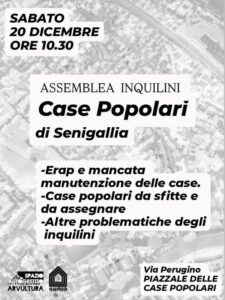 In primis l’ERAP, il cui presidente, ai primi di dicembre nel corso di un’assise, ha versato lacrime di coccodrillo sulla “emergenza abitativa”, con una bella faccia tosta se si considera lo stato delle abitazioni di proprietà dell’ente. L’ERAP non interviene, lasciando le case a marcire, e tiene appartamenti vuoti, come i 44 alloggi al Cesano e i tanti disseminati nella nostra città.