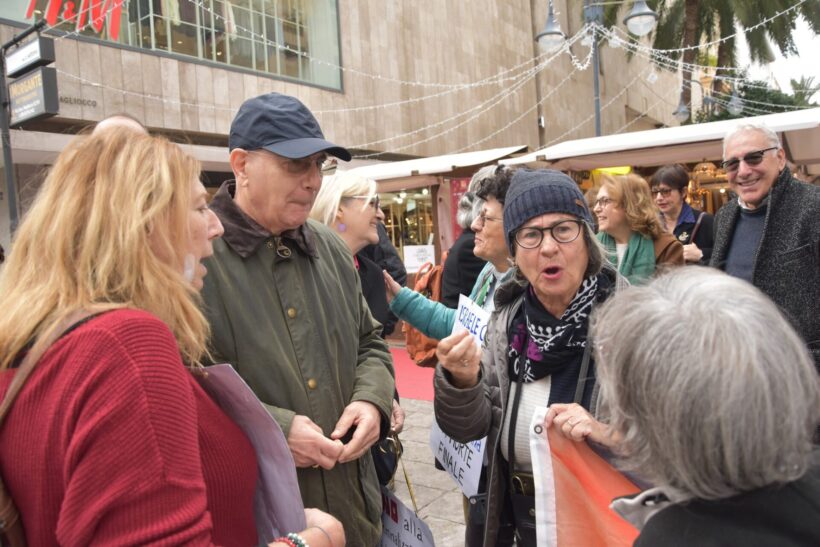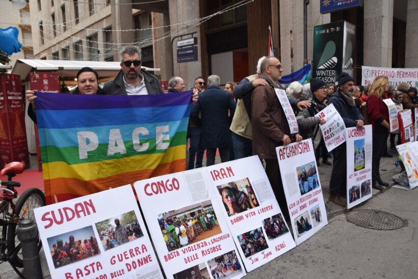 La buona notizia è che c’è chi ancora manifesta perché la pace sia un diritto di ogni essere umano, in un mondo che precipita per tutti verso la guerra. E se i cartelli “parlano” di pace le manifestanti ascoltano chi si ferma a parlare con loro degli effetti della guerra: storie di ordinaria difficoltà tra lavoro che si perde, salari che diminuiscono, cure mediche sempre più care, storie di sfiducia nelle istituzioni e nella politica occupata a disegnare confini, alzare muri, costruire nemici.