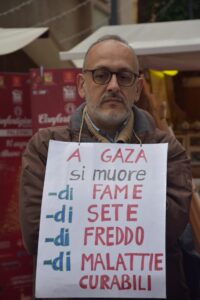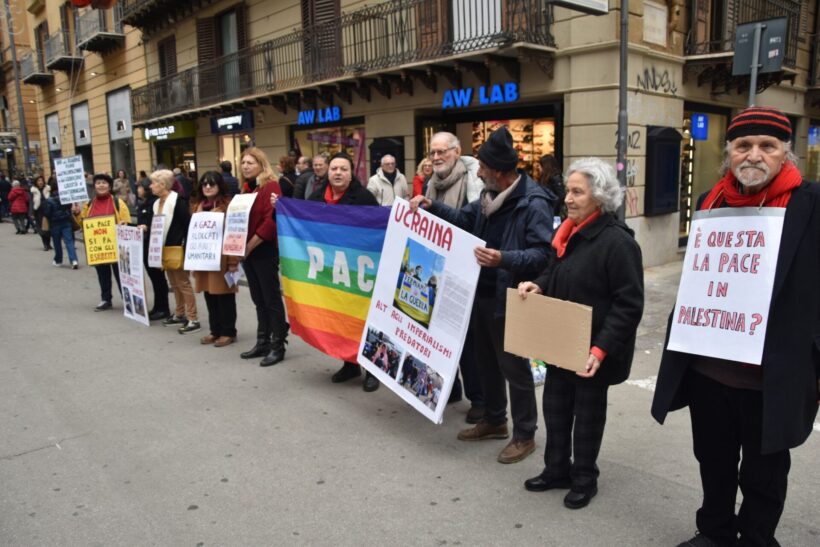 Così, mentre in Palestina, Ucraina, Congo, Sudan, Myanmar si continua a morire senza che la diplomazia di quel mondo – che conosce solo la storia che ha fatto a colpi di cannone – riesca a cambiarla a beneficio di tutti, nel salotto buono di Palermo si fanno gli ultimi acquisti per riempire la calza della befana, i bambini tengono il filo di un palloncino, qualcuno si ferma a leggere i cartelli.