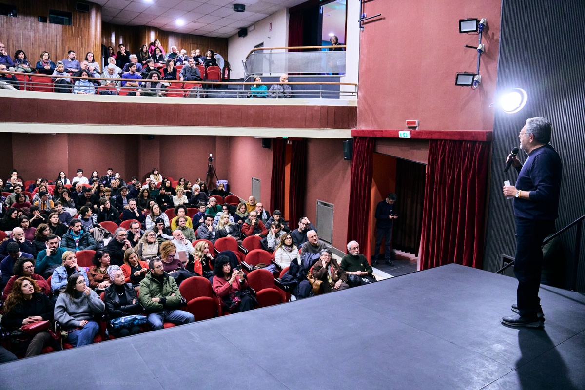 Alla proiezione delle ore 21 è seguito un lungo incontro pubblico moderato da Maurizio Del Bufalo, coordinatore del Festival del Cinema dei Diritti Umani di Napoli, da anni impegnato nella costruzione di un circuito culturale che utilizza il cinema come strumento di denuncia e controinformazione. Nel dialogo con il regista e con Albanese è emerso il senso profondo del titolo, volutamente provocatorio. Le Nazioni Unite sono nate per garantire la pace, ma oggi appaiono incapaci di fermare il massacro di una popolazione civile. Non si tratta solo della Palestina, ma di un fallimento più ampio dell’ordine internazionale e della sua capacità di tutelare i diritti fondamentali.