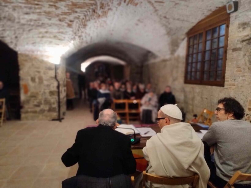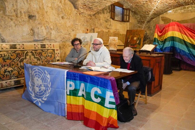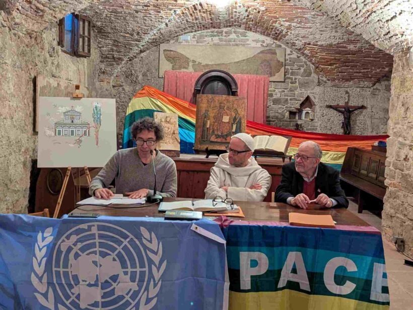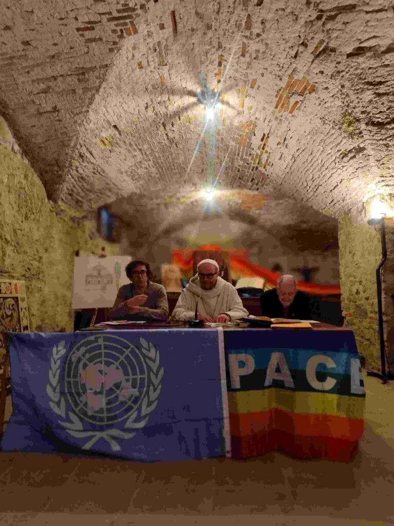 Ad aprire la conferenza è stato Padre Bernardo Gianni, priore di San Miniato al Monte, che ha collocato l’iniziativa in una cornice simbolica e storica di forte intensità. L’antico frantoio del monastero – ha ricordato – diventa metafora di un laboratorio della pace, dove al modello dell’industria bellica si contrappone un paziente e faticoso artigianato della pace.