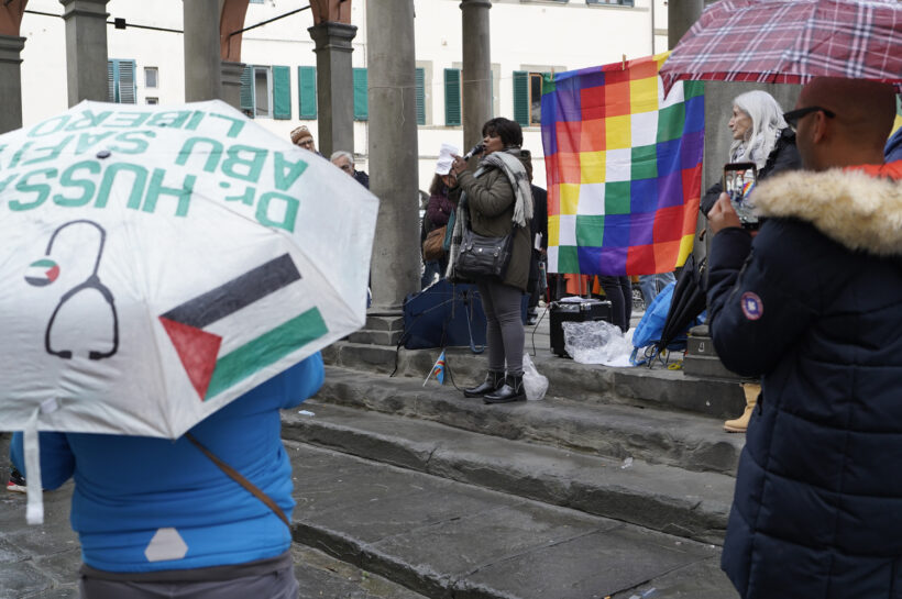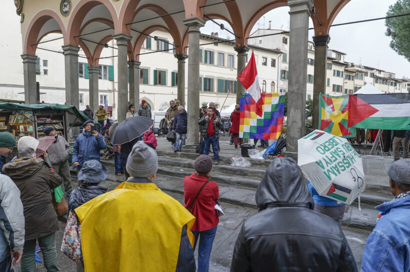 Ieri pomeriggio, nonostante il tempo avverso,  il presidio in Piazza dei Ciompi a Firenze nel centro storico della città, indetto da Casa Diritti dei Popoli e Firenze per la palestina,  ha raccolto un nutrito numero di ascoltatori.
