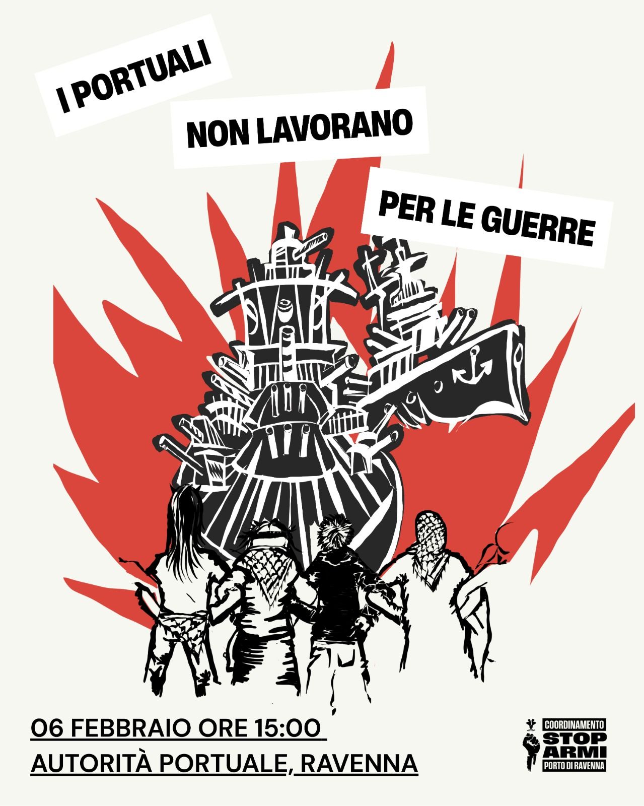 Scendiamo inoltre in piazza contro la repressione che il Governo Meloni sta portando avanti nei confronti del movimento in solidarietà alla Palestina e, quindi, in solidarietà ai 32 denunciati per il presidio del 28 novembre al Porto di Ravenna e a tutti gli/le altri/e attivisti/e che in queste settimane stanno subendo provvedimenti repressivi. Criminale è il genocidio ancora in corso in Palestina, criminali sono i guerrafondai. Anche per questo chiamiamo le decine di realtà che hanno sottoscritto l’appello in solidarietà ai 32 denunciati di Ravenna a scendere in piazza con noi il 6 febbraio.