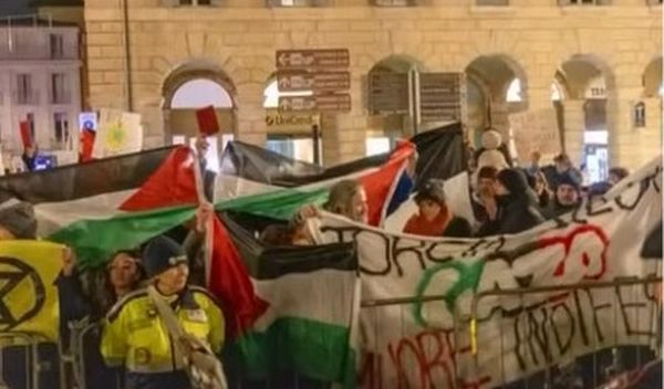 Nel mezzo della folla, un cittadino ha tentato di bloccare il passaggio della fiamma sventolando una bandiera palestinese ed è stato immobilizzato e trascinato via in malo modo.