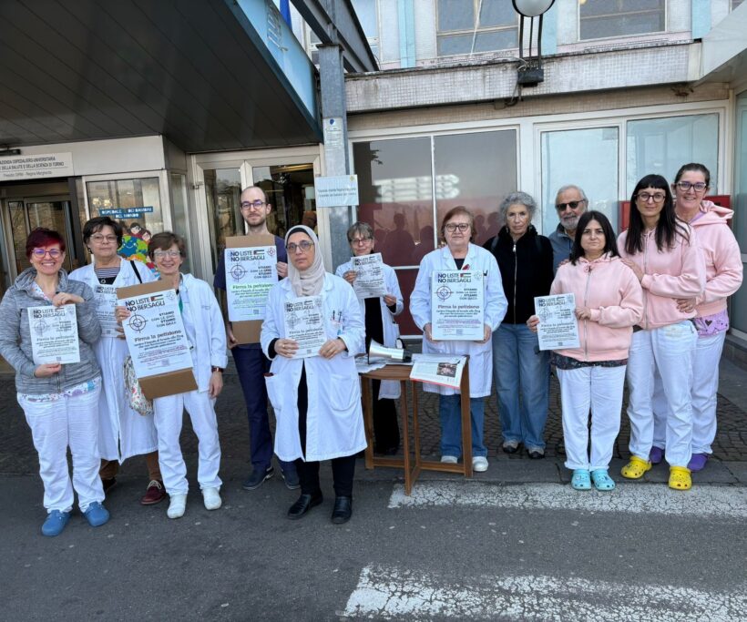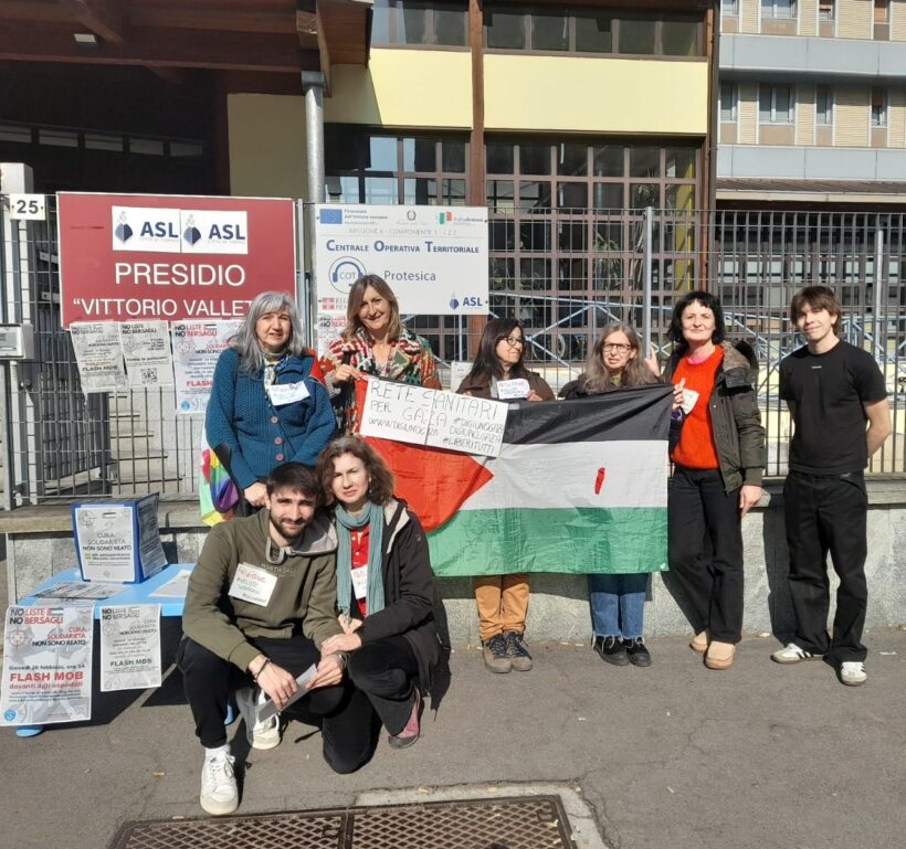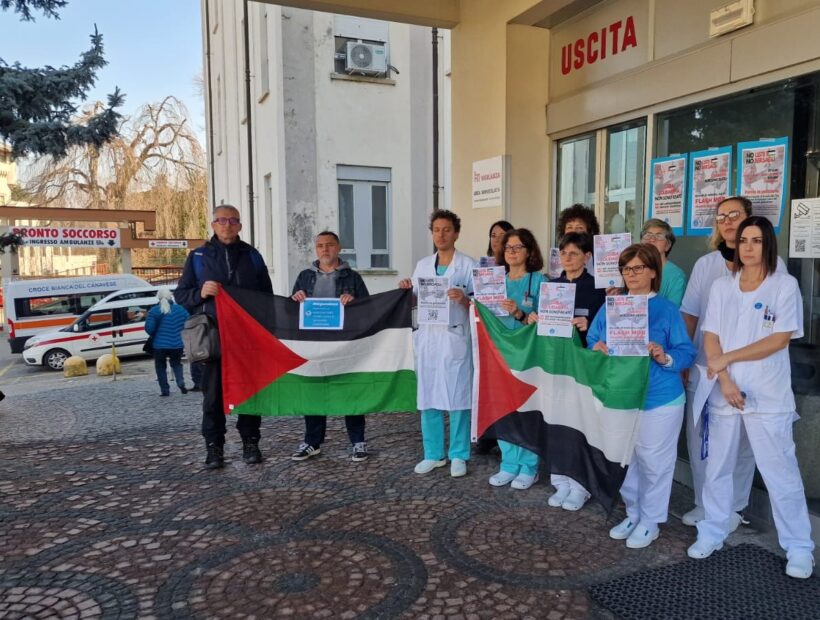 Ieri, 26 febbraio, in oltre 50 città italiane di fronte ad altrettanti ospedali sono stati svolti dei flash-mob in solidarietà con le ong colpite dall’ingiunzione (alcune foto nella rassegna in calce) e contemporaneamente veniva ‘lanciata’ la petizione rivolta ai governanti e alla società civile da numerose persone, in particolare operatrici e operatori della sanità, e associazioni che operano per la pace, in difesa dei diritti umani e del diritto internazionale.