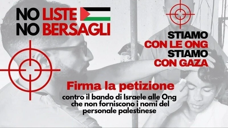 Noi operatrici e operatori della sanità e associazioni che operano per la pace, in difesa dei diritti umani e del diritto internazionale esprimiamo la nostra solidarietà a Medici Senza Frontiere, a Oxfam e a chi delle 37 ONG a cui Israele ha negato il permesso di operare a Gaza rifiuterà di consegnare alle autorità israeliane le liste del proprio personale palestinese, ritenendola una richiesta incompatibile con i principi umanitari e con il dovere di protezione dei lavoratori e delle comunità assistite. Questa decisione coraggiosa non è un atto di sfida: è un imperativo etico e legale.