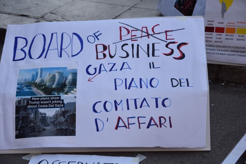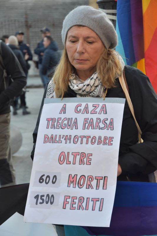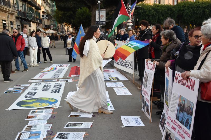 Dopo l’apertura al ritmo dei tamburi e delle mani degli astanti battute sul petto, con le voci del coro e delle percussioni  di Lucina Lanzara che invocano pace per tutti i Paesi in guerra, attivisti e attiviste si alternano al microfono: di quei Paesi e dei loro popoli raccontano sofferenza e oppressione, chiedono al nostro Paese azioni diplomatiche nel rispetto del costituzionale ripudio della guerra, smascherano, oltre le parole con cui ci vengono ammannite, le intenzioni di governi guerrafondai e i loro interessi economici.
